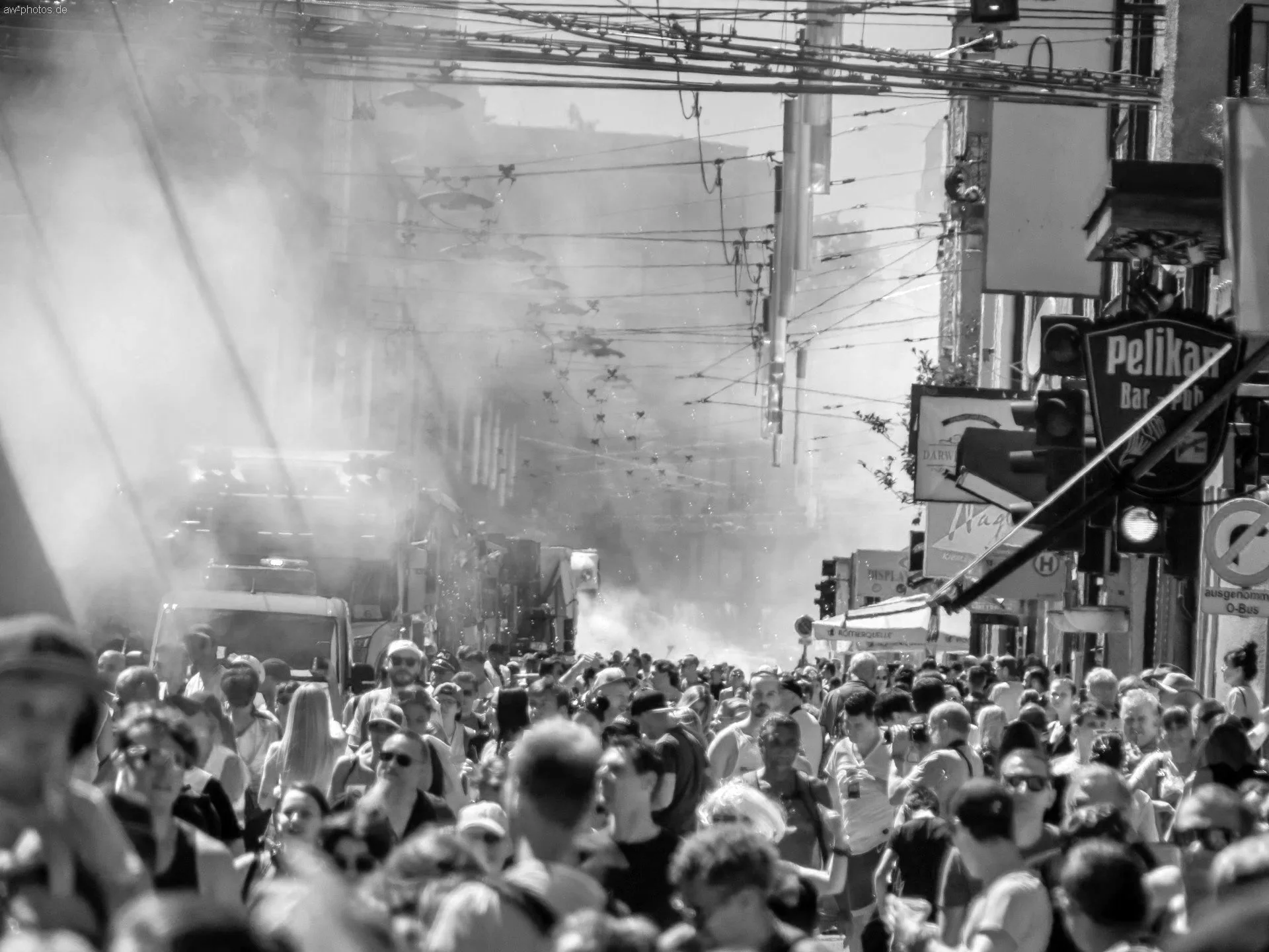und tausende Menschen ziehen gemeinsam durch die Stadt. Tanzend,